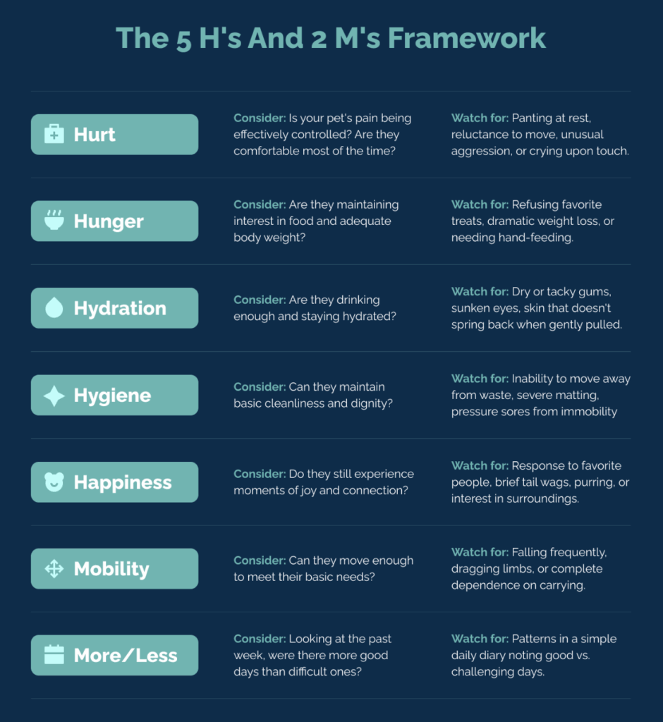 If your pet is extremely sick or so severely injured that he or she will never recover normal health, perhaps the kindest thing you can do for your pet is help induce death quietly and humanely through euthanasia. Your decision to have your pet euthanatized is a serious one, and seldom easy to make. Learn more about our process and see the quality-of-life scale below to help determine if it’s time.